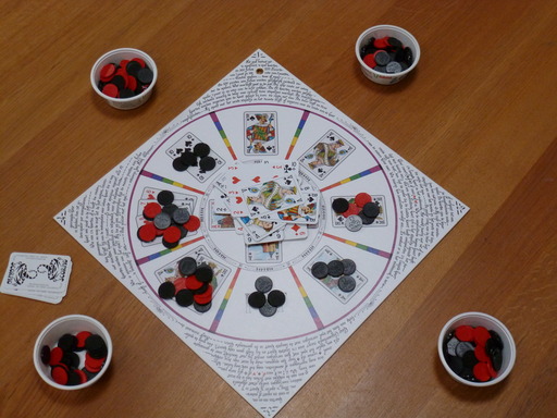 - Per speler wordt iedere ronde in elk van de 8 speelvakken 1 punt ingezet. Deze inzet kan middels het kaartspel worden verdiend.